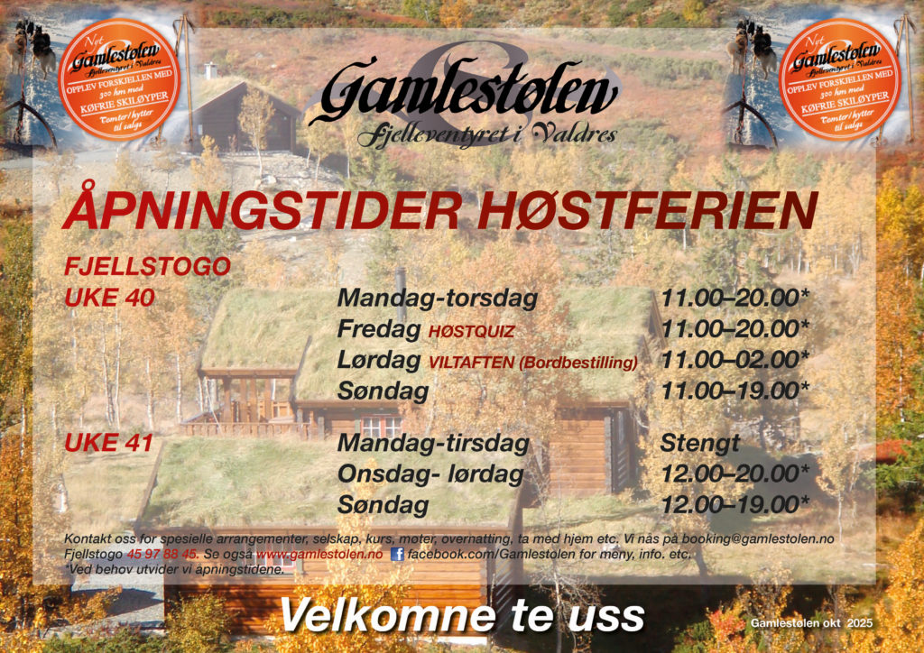 Vi tilbyr også utleiehytter med alle fasiliteter. Fjellstogo er hjertet i Gamlestølen og byr på deilig mat med råvarer fra lokaldistrikt. Her kan du også booke for eget arrangement, vi har også kurs/konferanse lokaler.